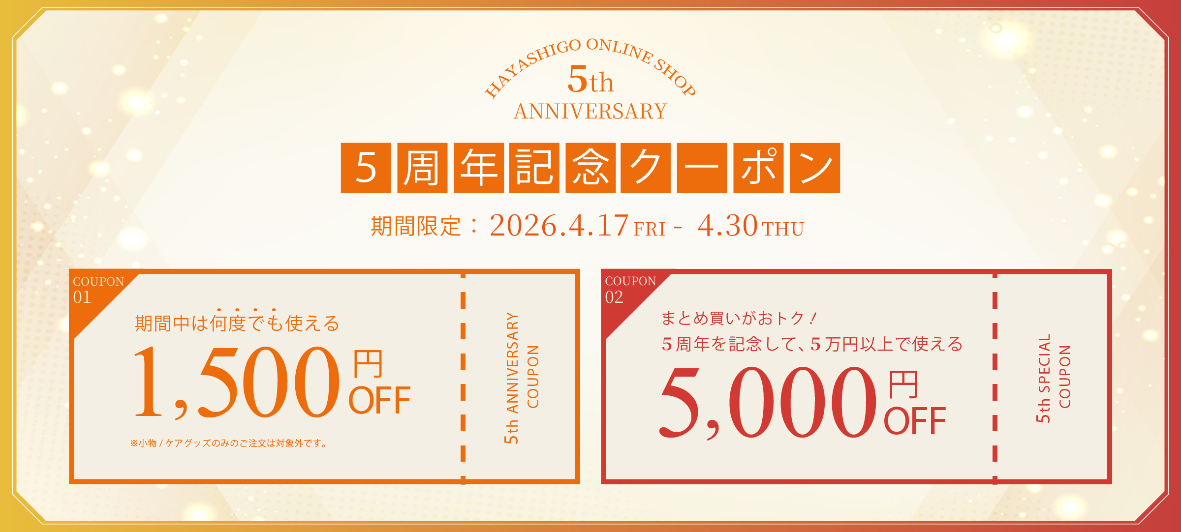 HAYASHIGO ONLINE SHOPは、おかげさまで5周年を迎えました。