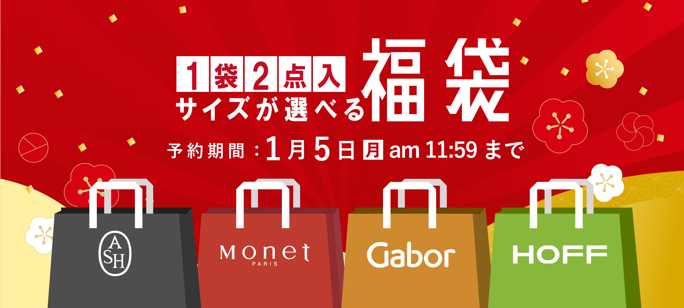 「サイズが選べる靴の福袋」には1袋に厳選アイテム2点が入っており、その価値は最大で66,000円相当!