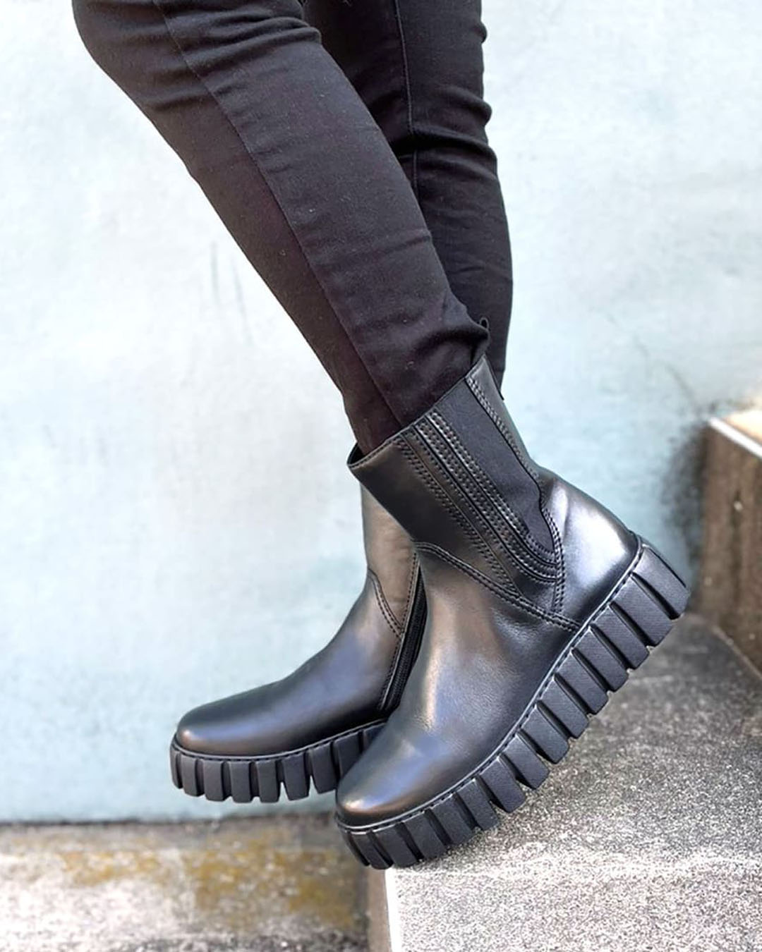 4.5cmの厚底なのに驚くほど返りが良いブーツ。カジュアルにもきれいめにも合わせやすいので、1足あると便利です。