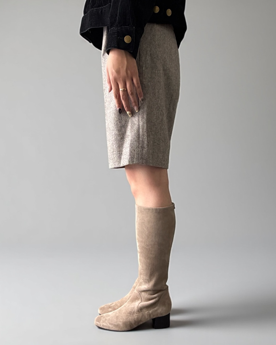 POINT:1 ロングブーツを諦めていた方も…! \ どんな体型にもフィットする美シルエット / ★ぴたっとフィットし美しい足元に ★作り方は企業秘密!360度ストレッチレザー ★ファスナーなしのデザインなのに下がってこない スタッフ M 身長156cm | ふくらはぎの外周41cm | 着用サイズ4.5(24cm) スタッフ S 身長163cm | ふくらはぎの外周36cm | 着用サイズ4.5(24cm) スタッフ F 身長153cm | ふくらはぎの外周32cm | 着用サイズ3(22.5cm) POINT:2 ロングブーツなのに… \ 靴下を履くようにするっと履ける / POINT:3 飽きのこないシンプルデザインなので… \ どんなコーデにもマッチ / 気になったアイテムは、 商品ページの「お気に入り」ボタンから登録しておけば マイページで一覧チェックが可能です! ぜひ活用してください! 直営店舗では お手入れ方法のお伝えはもちろん、 サイズ調整やお修理なども承っております。